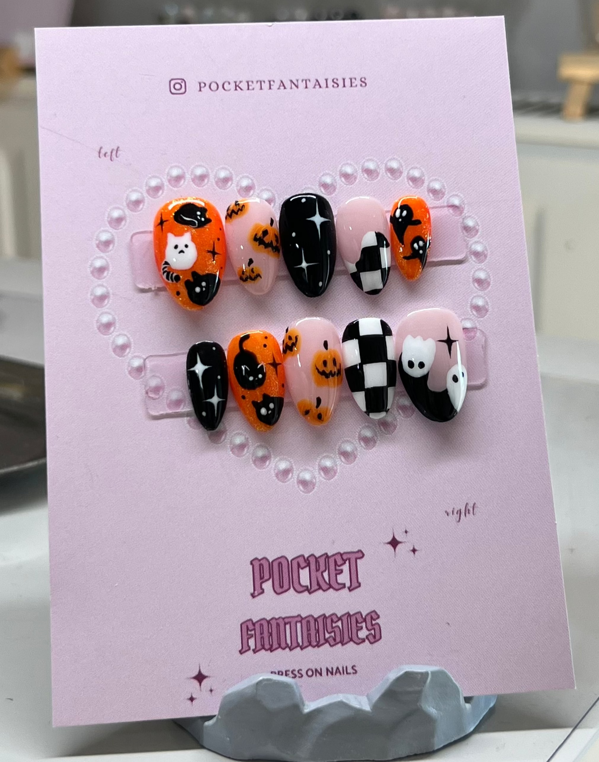 Chaque set est peint à la main, il se peut donc qu'il diffère légèrement du modèle d'exemple. Les Press On Nails sont fabriqués sur commande donc le délai d'expédition peut varier en fonction de la demande et les commandes en cours.